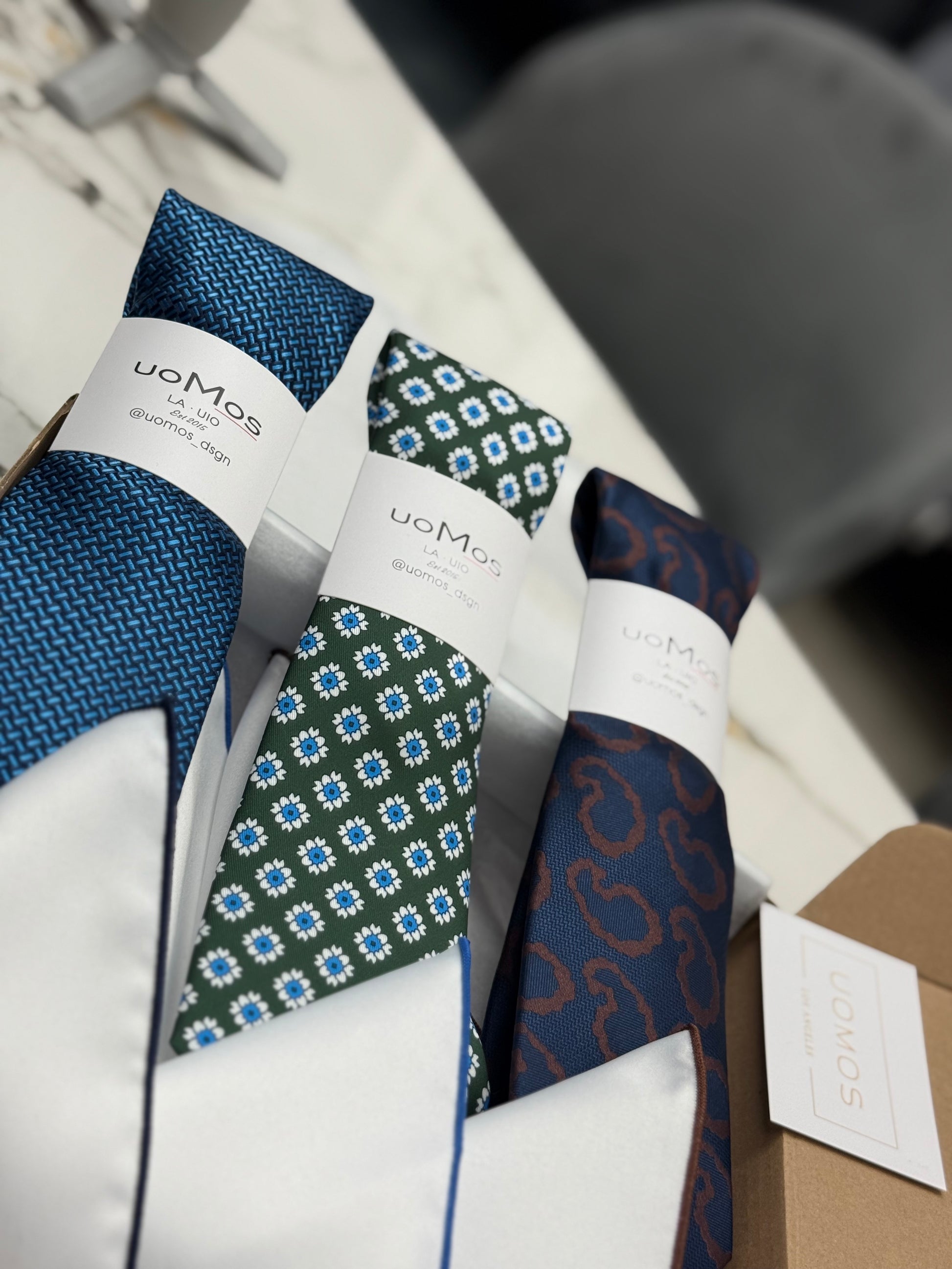 Upgrade your style or surprise someone special with our Luxury Tie Gift Box for Men by UOMOS, a carefully curated set designed for elegance, versatility, and exceptional value. This premium gift box includes three silk-touch ties featuring refined patterns and colors, along with two classic white pocket squares—essential accessories for a polished and sophisticated look.