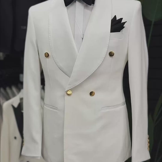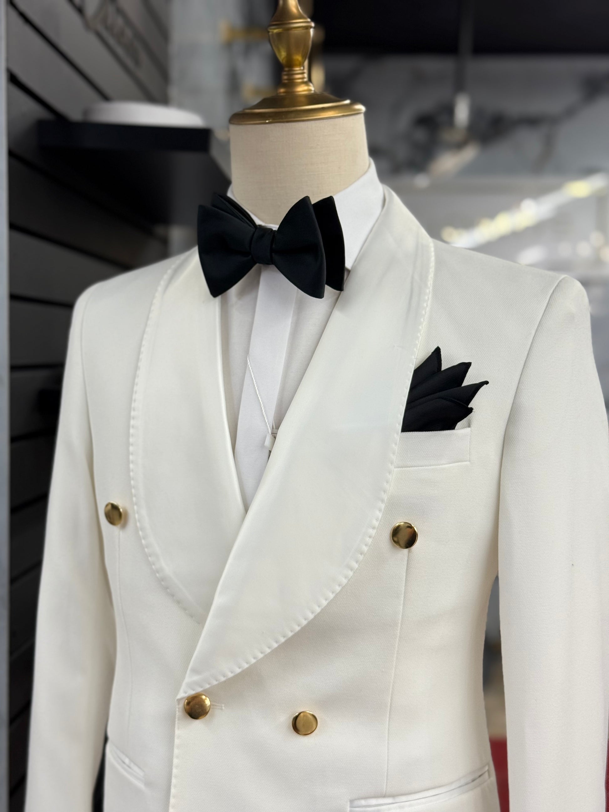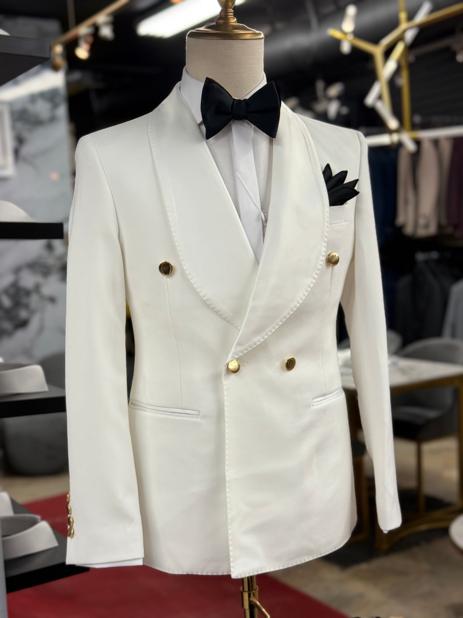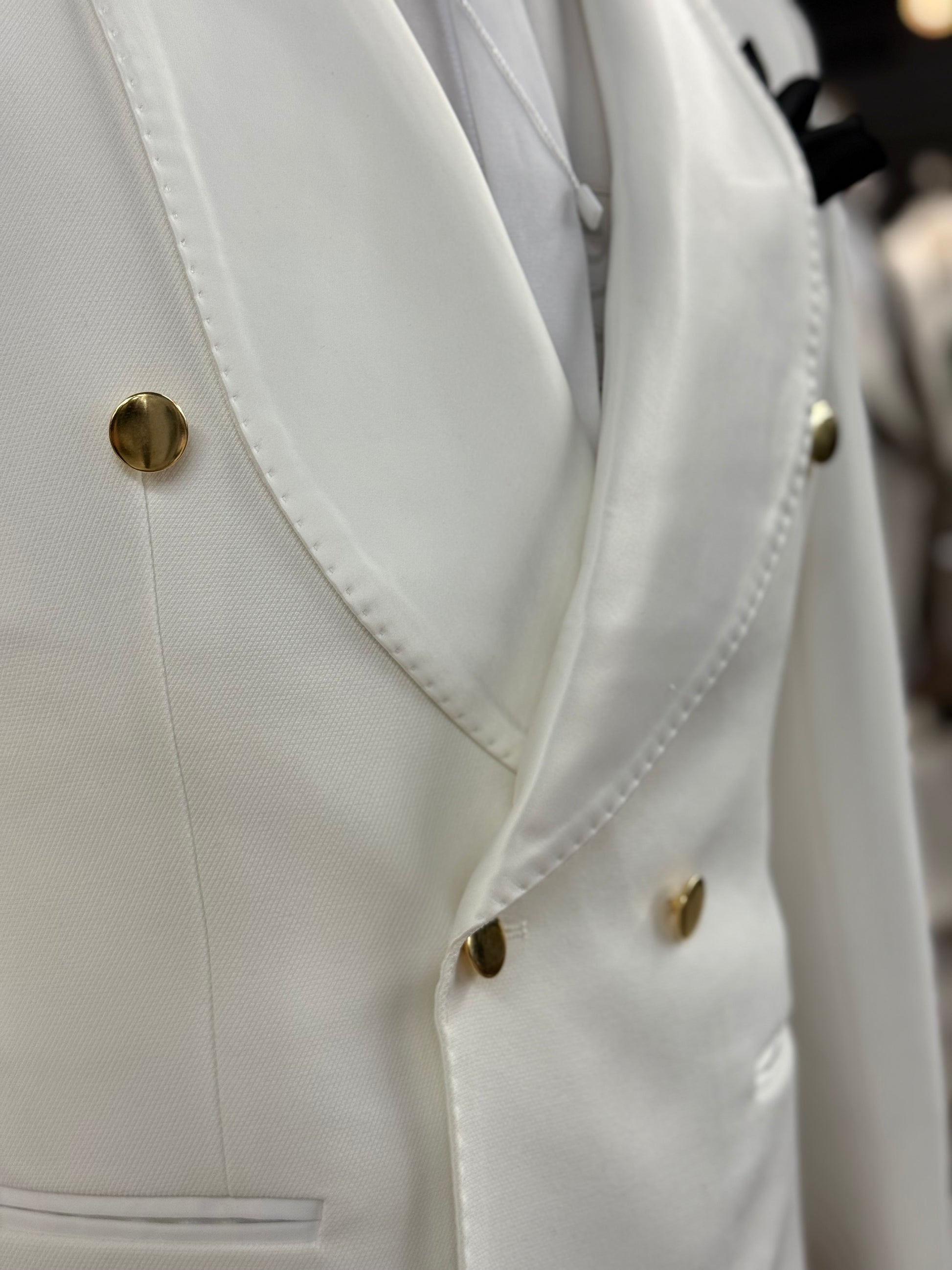 Off White Shawl Lapel & Gold buttons Tuxedo Double Breasted